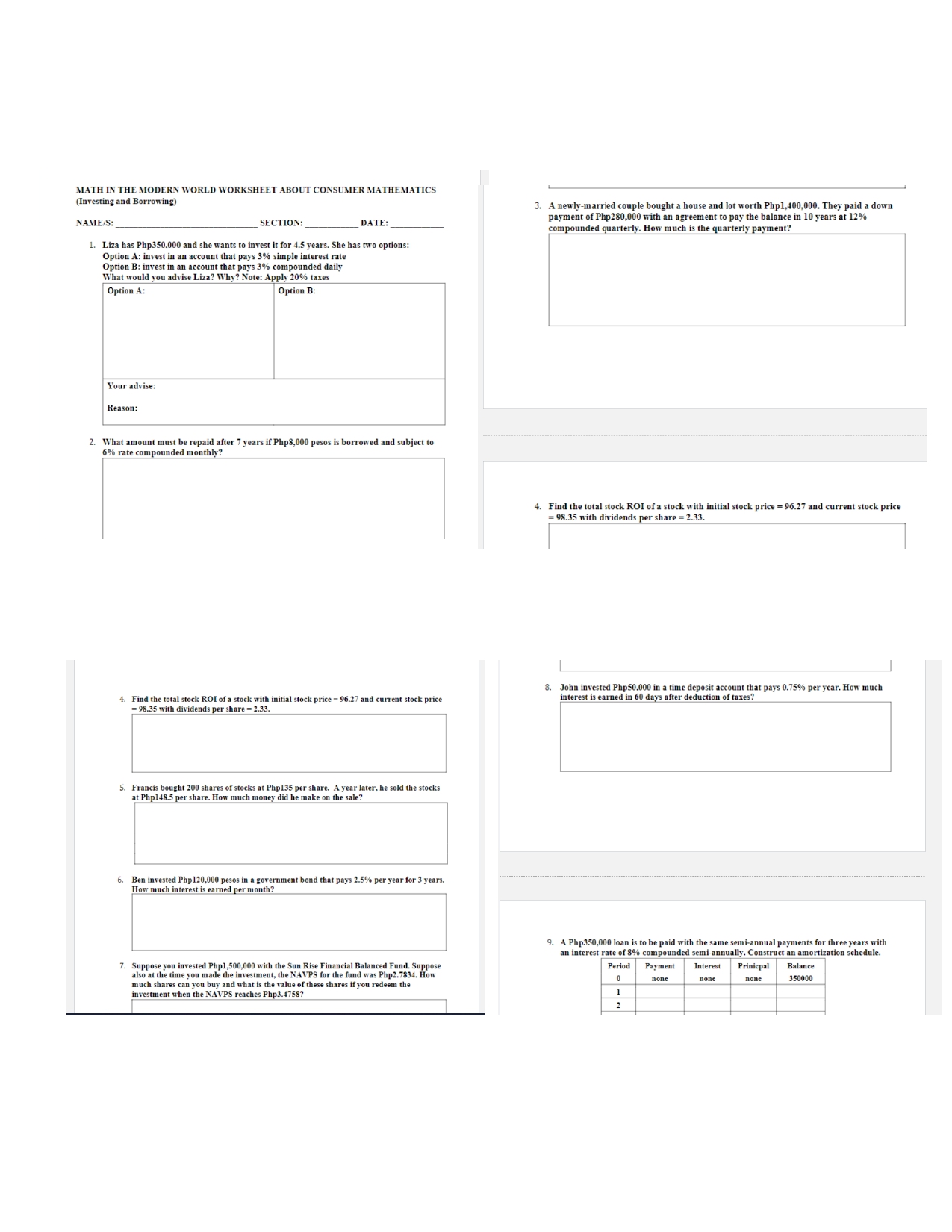› worksheets › consumer-math-worksheetsConsumer Math Worksheets | Printable Free Online PDFs Consumer math is one of the most fundamental concepts from a mathematics point of view. It is defined as a branch of mathematics that uses basic math skills in real-life situations like shopping, calculating taxes, estimating monthly budget, calculating interest rate for a loan, etc. Calculating simple and compound interests, profit and loss etc. all come under this category.