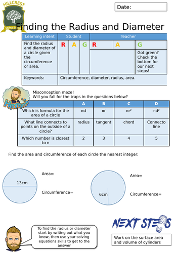 Printable math worksheets radius diameter. worksheets.theteacherscorner.net › make-your-ownCrossword Puzzle Maker | World Famous from The Teacher's Corner Our crossword puzzle maker allows you to add images, colors and fonts to create professional looking printable crossword puzzles. No registration needed to make free, professional looking crossword puzzles! › full-mathMath Worksheets Circles: Radius, Diameter, Circumference. Calculate the diameter and radius of circles; also includes circumference and area worksheets. Color-by-Number Worksheets. Color the mystery pictures according to the number key at the bottom. Counting Money (Australian) Use these worksheets to practice counting Australian money. Counting Money (Canadian) imathworksheets.com › equations-worksheets › equations-andEquations and Word Problems Worksheets | Math Worksheets Radius or Diameter Given (In Terms of Pi) Volume of a Rectangular Prism; Volume of a Sphere. Radius Given (Using 3.14) Diameter Given (Using 3.14) Radius or Diameter Given (Using 3.14) Radius Given (In Terms of Pi) Diameter Given (In Terms of Pi) Radius or Diameter Given (In Terms of Pi) Volume of a Triangular Prism; Math Worksheets. Absolute ... › classroomresourcesClassroom Resources - National Council of Teachers of Mathematics This extensive library hosts sets of math problems suitable for students PreK-12. The resources span multiple topics and members have access to the over 1,000 problems and supporting materials! NCTM members can browse the extensive archive of Students Explorations in Mathematics activities and materials.
